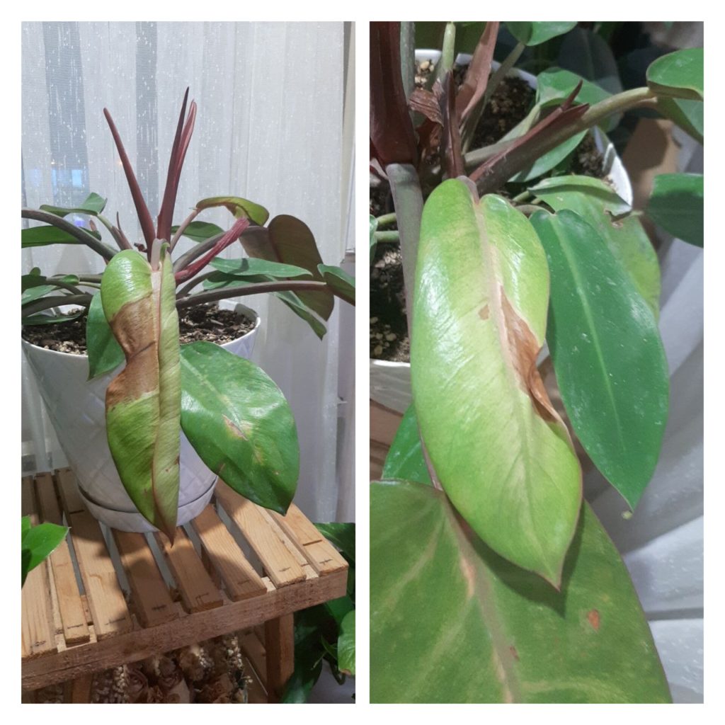 لکه های سوخته روی برگها مشاهده میشود:اشعه ی مستقیم افتاب یا غبارپاشی در افتاب باعث ان است،گلدان را به نیم سایه منتقل کنید،و از غبارپاشی در افتاب بپرهیزید.