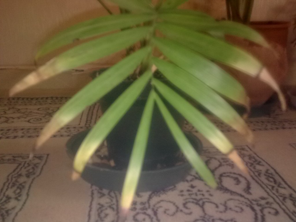 به خاطر ابیاری با اب لوله کشی املاح خاک میره بالا، خاک زیاد خشکی ببینه املاح روی خاک شوره میزنه و گیاه علائمی شبیه به کم آبی و خشکی رو به خودش میگیره و برگها زرد میشن و نوک برگها خشک میشن…باید ابیاری سر وقت انجام بشه با اب کتری سرد شده اب بدید و همراه ابیاری باید چند قطره سرکه بریزید یا ترجیحا اسید هیومیک