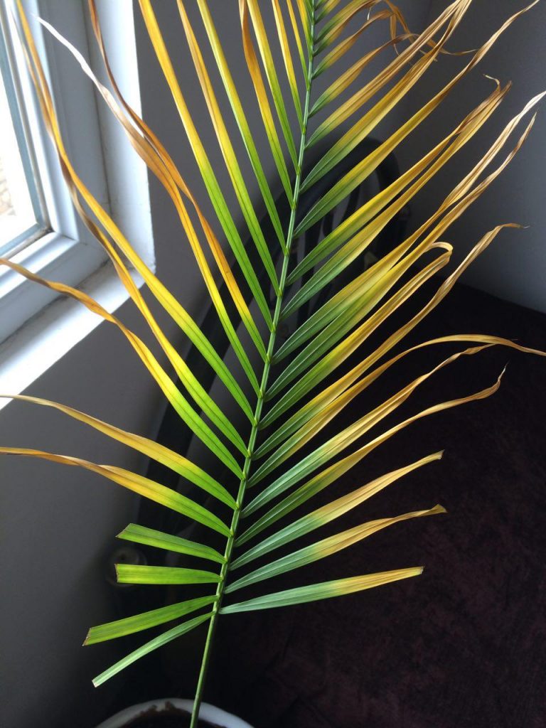 سلام روزبخیر من یک نخل اریکا کوچولو دارم که روز به روز داره زردتر میشه. ۲روز یک بار بهش آب میدم و پشت پنجره هست و نورش خوبه. میشه بگید علت کم رنگ شدن رنگ برگ ها و سوختن نوک برگ ها چیه؟ ممنونم