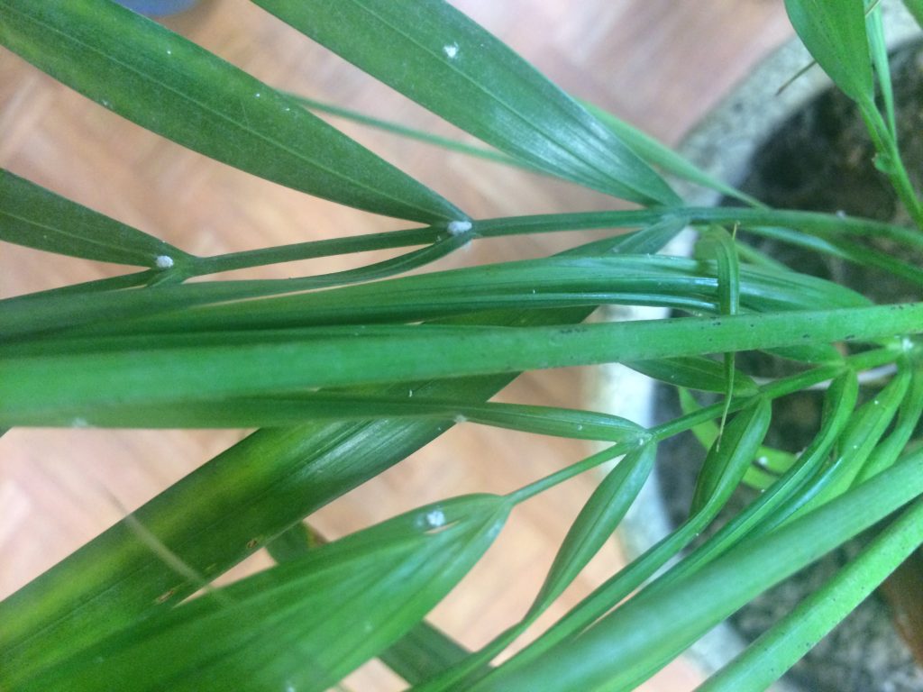 روی برخی از برگهای نخل اریکای من نقاط کوچک سفید، شبیه قطرات شیر دیده میشود لطفا راهنمایی بفرمایید.